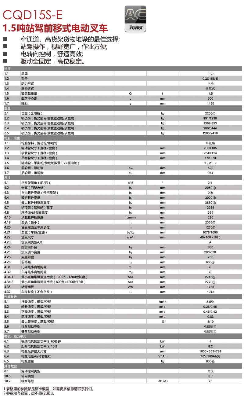 1.5噸前移式站駕電動(dòng)叉車CQD15S-E
