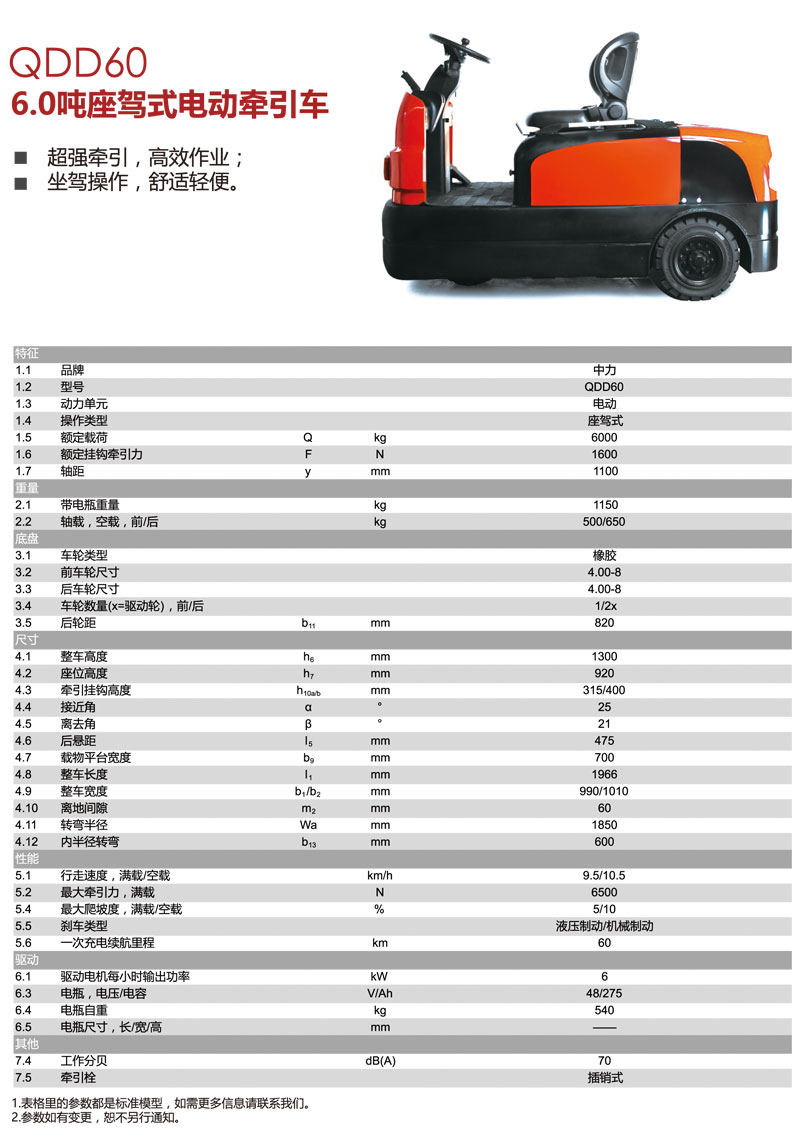 中力電動(dòng)叉車,6.0噸座駕式電動(dòng)牽引車QDD60