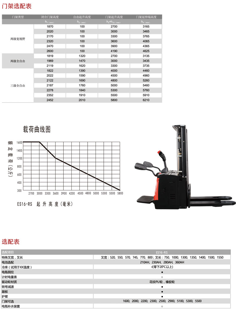 中力電動叉車,1.6噸電子轉(zhuǎn)向踏板式電動堆高車ES16-RS