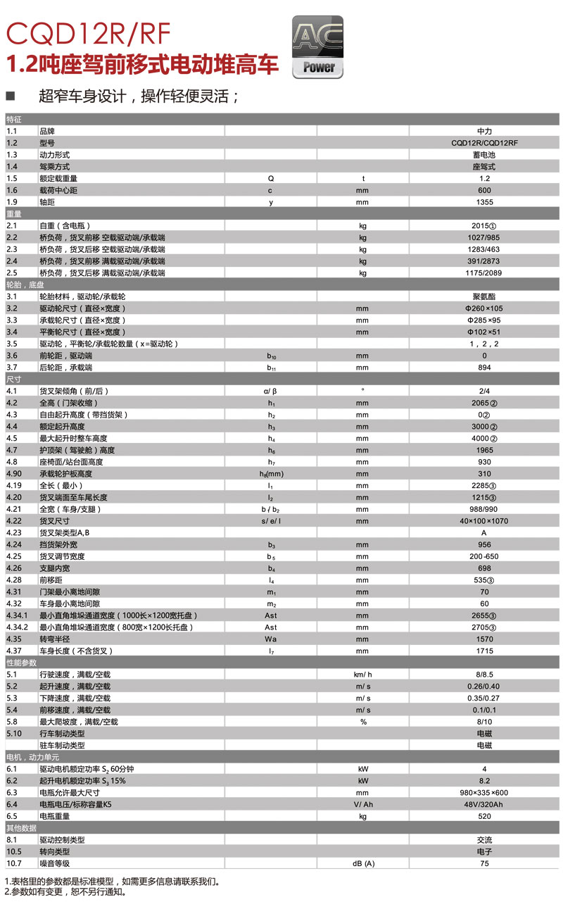 1.2噸前移式座駕電動(dòng)堆高車CQD12R/CQD12RF