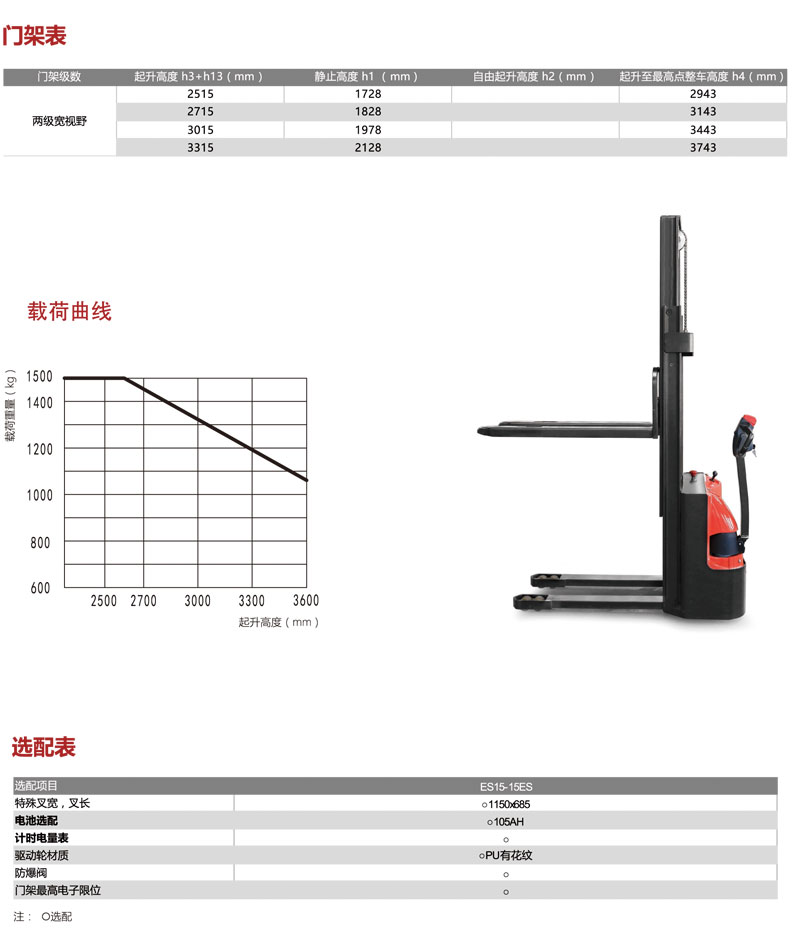 東莞中力電動叉車,1.5噸經(jīng)濟型電動堆高車ES15-15ES