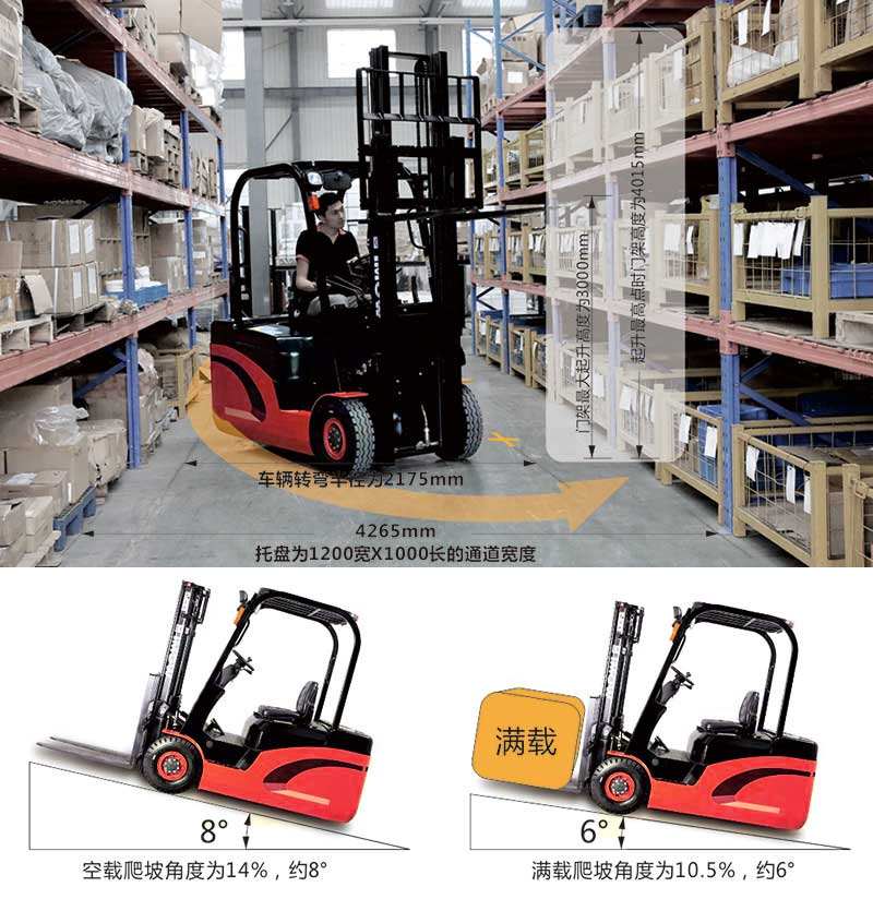 常平中力電動叉車,1.5、1.8噸三支點電動叉車